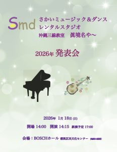 SMD音楽発表会/1月14日(水)〜17日(土)地下スタジオ日程